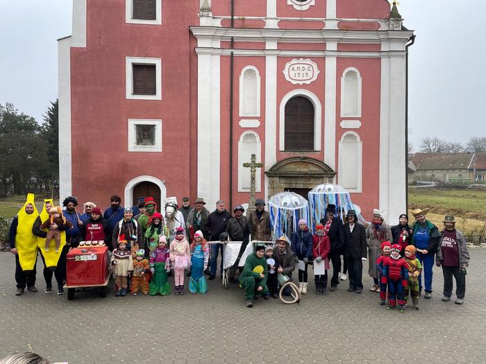Najdete tam i fotografie letošního průvodu, do kterého se téměř po 20ti letech vrátila maska knínického čápa, která byla nalezena v Krasonicích na půdě školy.