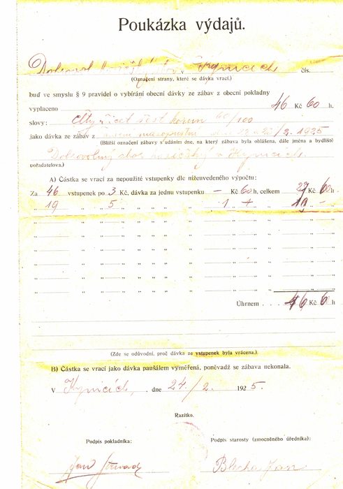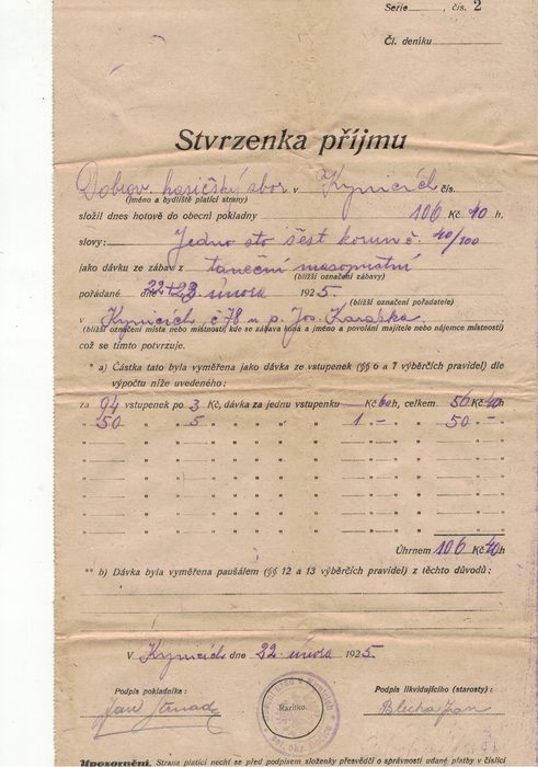 To, že je masopust v Kynicích opravdovou tradicí dokládají i dokumenty v archivu místních hasičů, kteří průvod pořádali hned v začátku své existence, tedy před sto lety. Ve fotogalerii najdete doklady o příspěvku ze vstupného do obecní poklady, které se tenkrát museli odvádět.