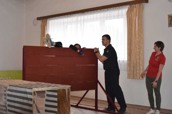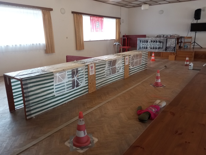 Děti čekaly tyto disciplíny: běh s hadicemi, překonání bariéry, údery kladivem, pronesení závaží tunelem, smotání hadice, přenos závaží, přesun figuríny a závěrečný běh na podium do cíle.