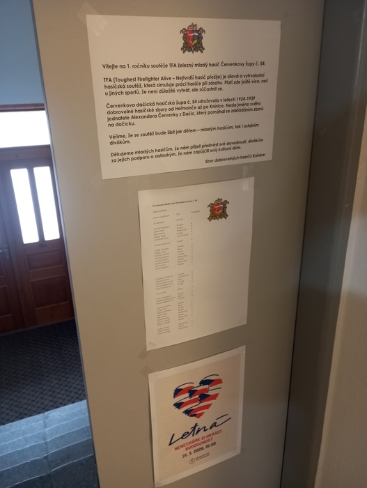 V první jarní den roku 2026 pořádal Sbor dobrovolných hasičů Knínice ve slatinském kulturním domě TFA soutěž pro mladé hasiče. Soutěž nesla název TFA železný mladý hasič Červenkovy župy č. 54. Název tak odkazoval na fakt, že na této vytrvalostní a silové soutěži změřili své síly mladí hasiči sbory dačické hasičské župy, která sdružovala sbory na dačicku v letech 1924-1939 a nesla jméno svého jednatele Alexandra Červenky.